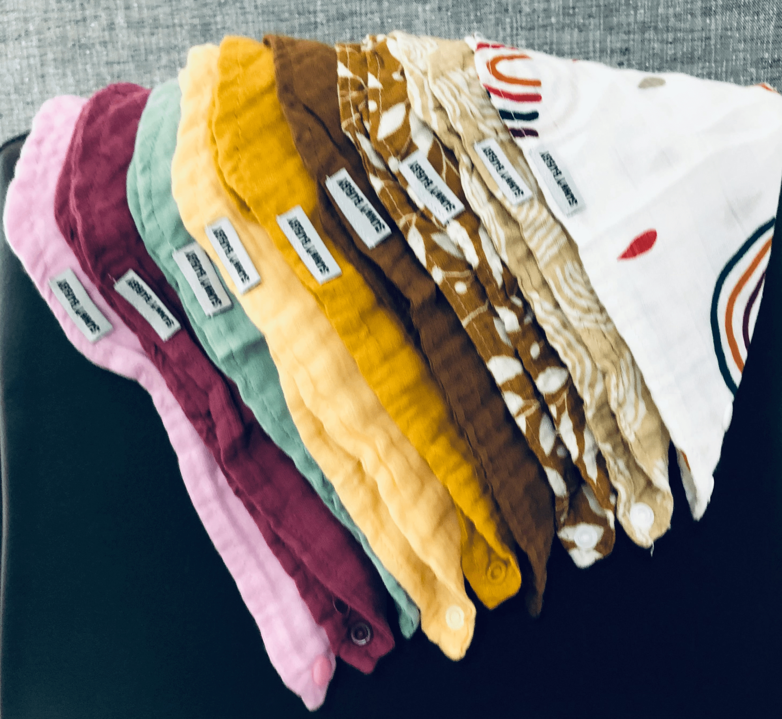Our Earthy Rainbows Bandana Muslin Baby Bib is an essential item for every Bubby.