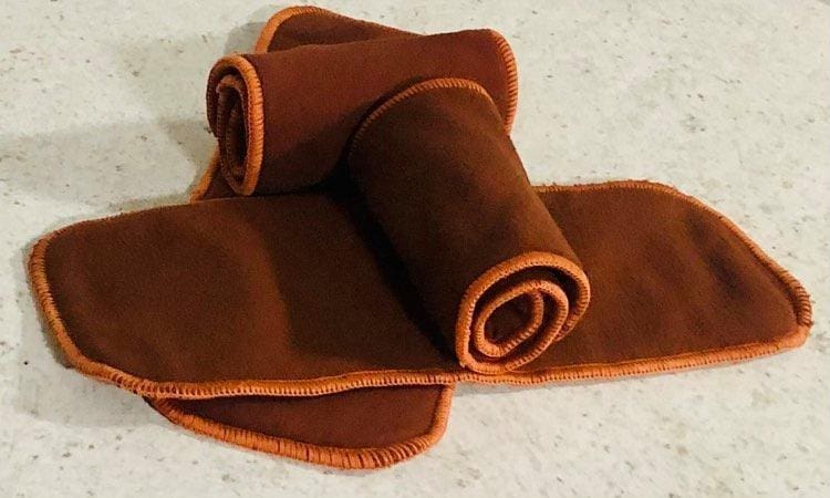 Coffee Fleece: 4 layers, 13.5x35cm, two outer layers of coffee fleece, two inner layers of microfibre, quick to absorb, best paired with a natural insert underneath.